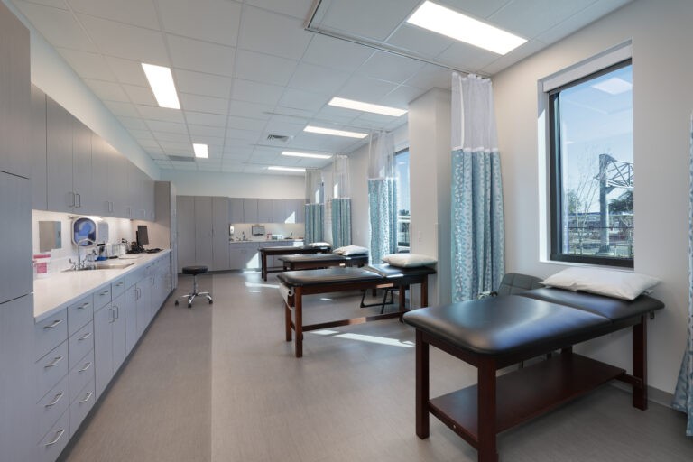 This location provides exceptional visibility and exposure from 4th Street. Even more significantly, the building pad will be elevated to 11′, approximately 5′ higher than the previous building’s elevation at the site, with the first floor 2′ above the flood level. The three-story building will rise an additional 52′, making it 57′ above the elevation of 4th Street. This height will make it a way-finding landmark, offering excellent signage opportunities and ensuring everyone is aware of the new AFO location. Additionally, the new location will prevent traffic stacking on 4th Street, increasing safety for patients and staff.